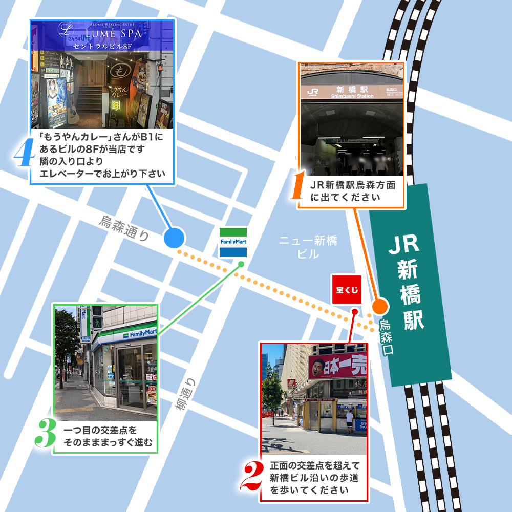 新橋メンズエステルメスパへのアクセス方法をご案内いたします。 新橋駅の近くの完全個室のプライべート空間なのでゆったり過ごせます。
